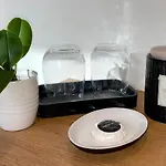 Pokoje mají vnitřní dvorek, mini-ledničku, přístroj na přípravu kávy a čaje plus koupelny s prostornou sprchou a samostatnou toaletou.